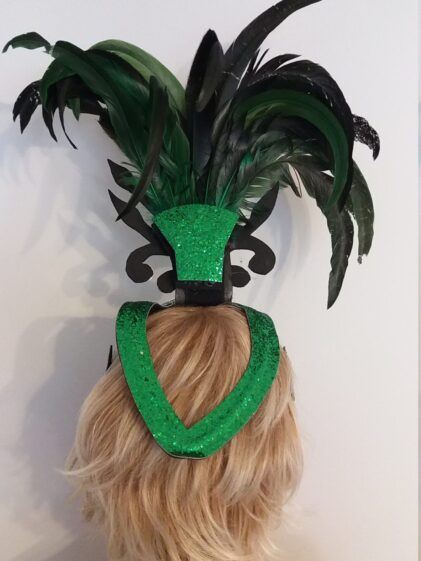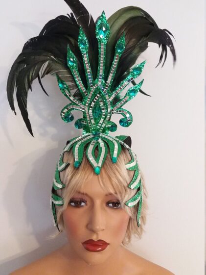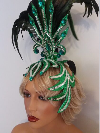 GREEN base with Mirror Headpiece with Rooster Feather decoration ! ( Please see all pictures ! )