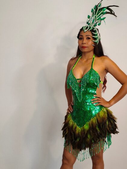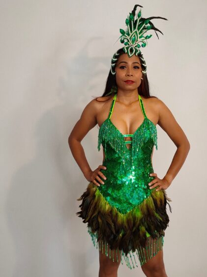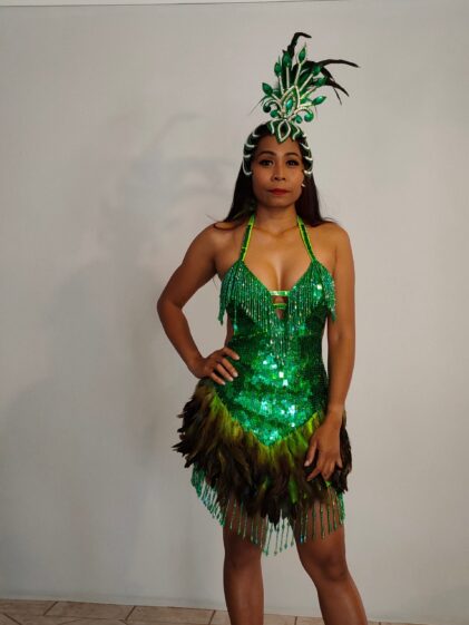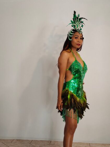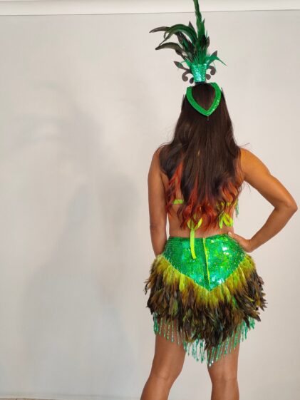 GREEN color Sequins with GREEN Feather Dress, open back. ( Please see all pictures ! )