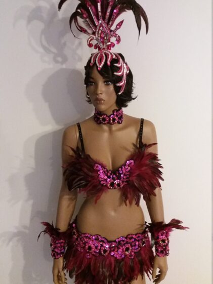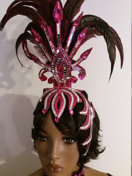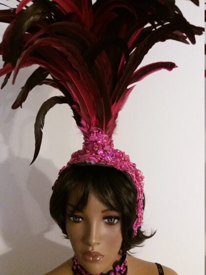 | PINK Beads+PINK Feather | Pink Headpiece # 1, Pink Headpiece # 2, PINK Bikini Set- 3pc, Wrist Cuffs – 1 pair |