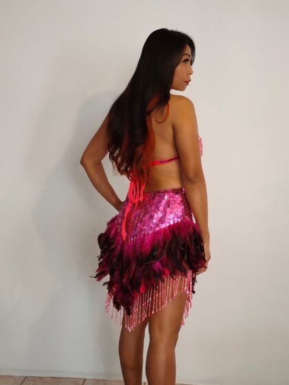 HOT PINK Sequins with PINK Feather Dress, open back. ( Please see all pictures ! )