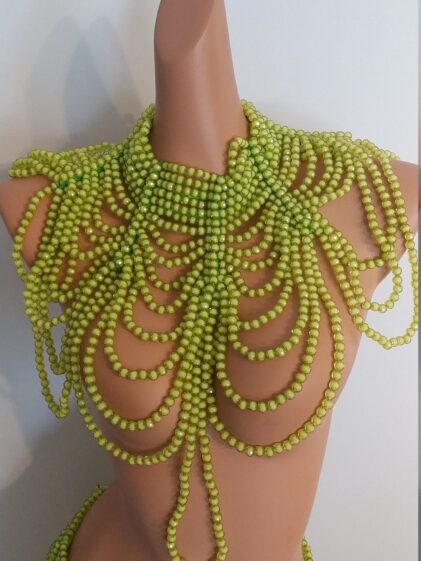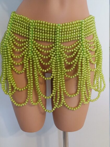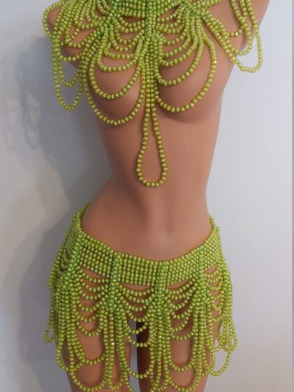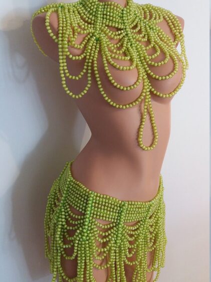 | Lime GREEN BEADS OUTFIT | Beaded SKIRT/BELT, Beaded COLLAR/TOP |