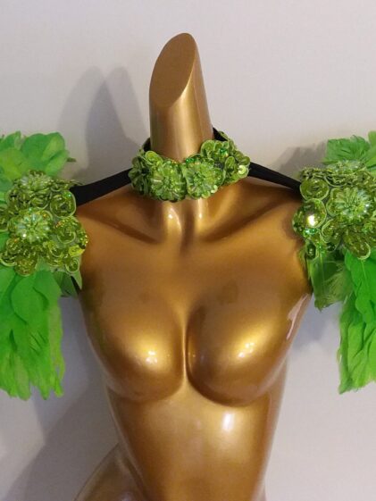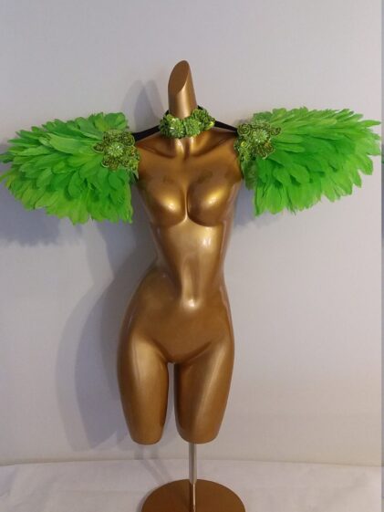 Large LIME GREEN real Duck Feather Shoulder Pads, connected through beads collar ! ( Please see all pictures ! )