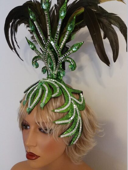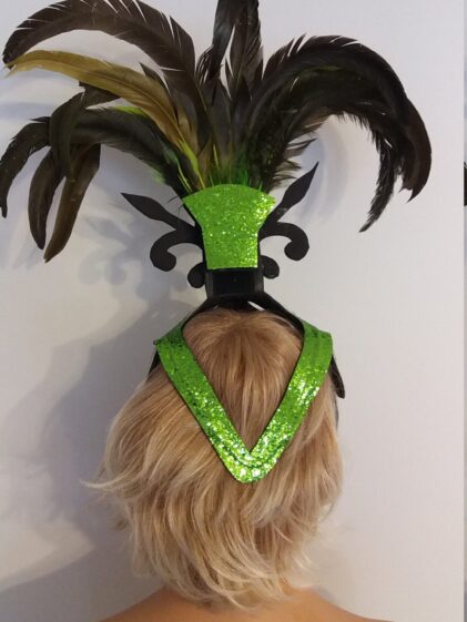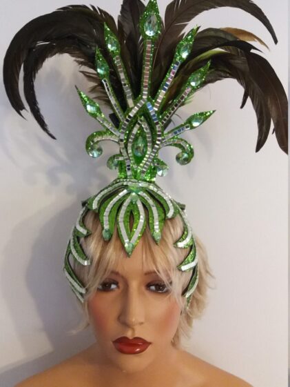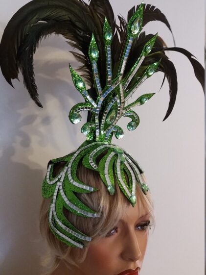 LIME GREEN base with Mirror Headpiece with Rooster Feather decoration ! ( Please see all pictures ! )