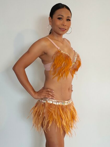 Size S/small M = 32 inch Feather Skirt + padded Bra (75cm/34 inches !