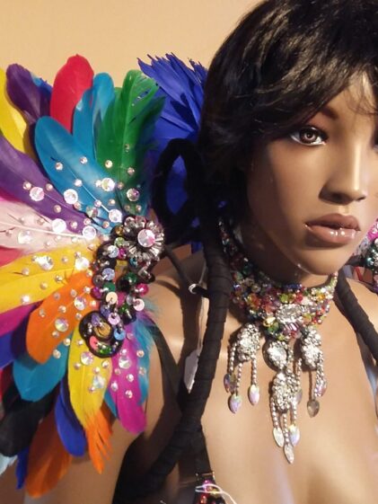 Large MULTI COLOR real Duck Feather Shoulder Pads, connected through beads collar !    ( Please see all pictures ! )