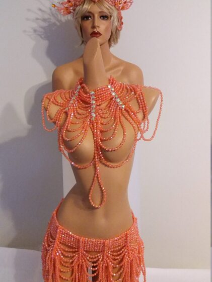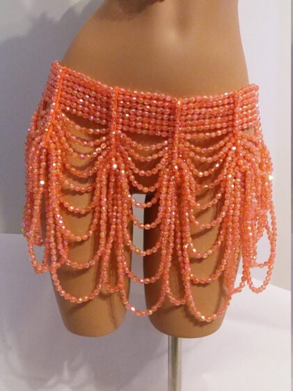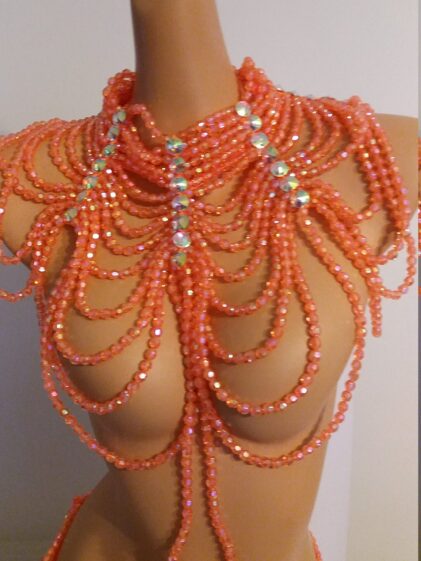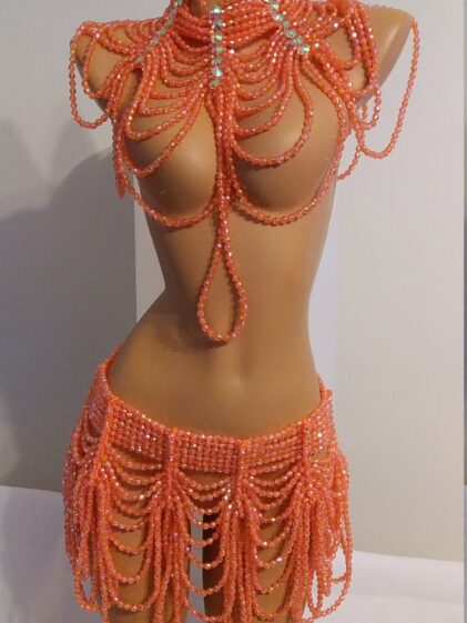 | ORANGE BEADS OUTFIT | Beaded SKIRT/BELT, Beaded COLLAR/TOP |