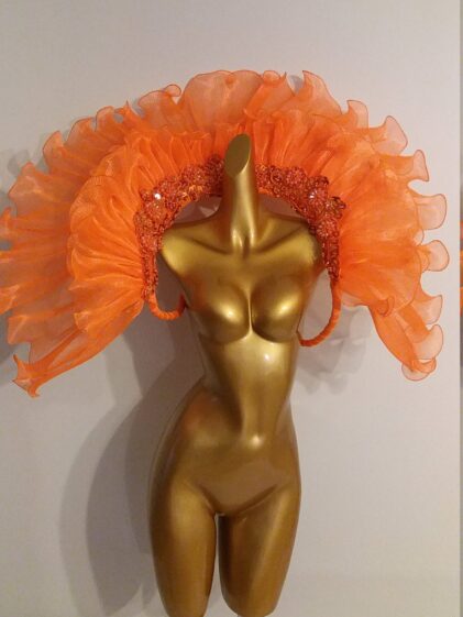 Large ORANGE Organza/Chiffon Wings. Wings have extra slots for additional feathers ! ( Please see last picture ! )