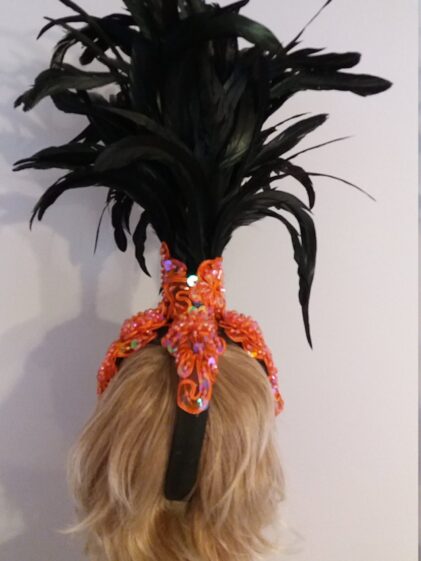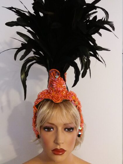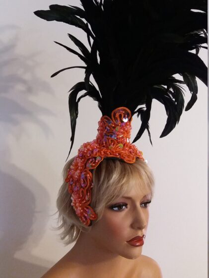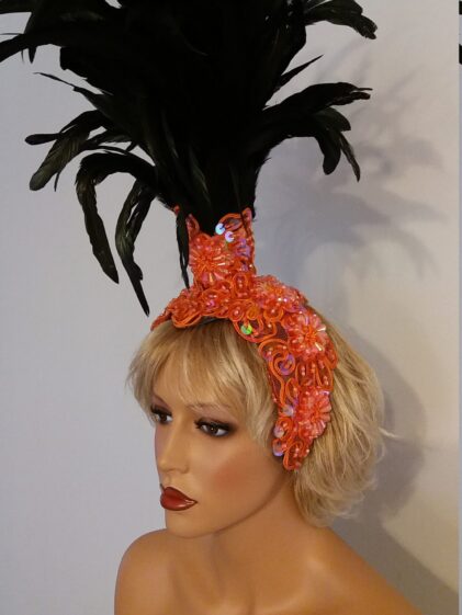 BLACK Rooster Feather with ORANGE sequins Headpiece ! ( Please see all pictures ! )
