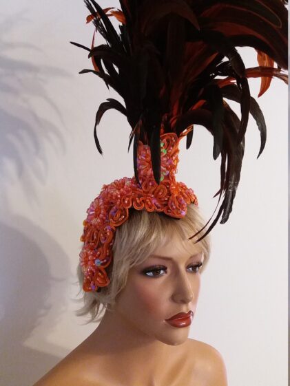 ORANGE Rooster Feather with ORANGE sequins Headpiece ! ( Please see all pictures ! )