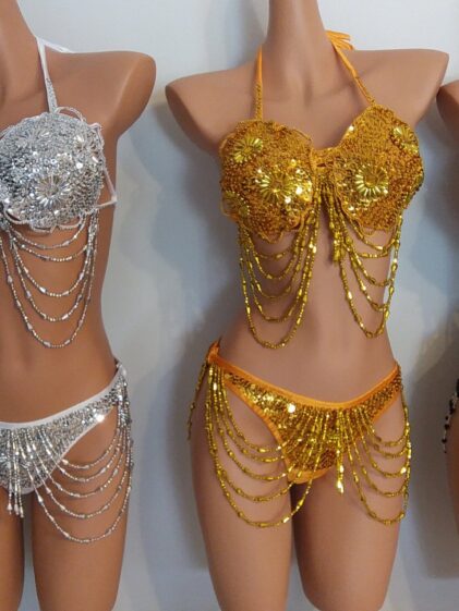 Lovely handmade Sequin/Beads BIKINI, with small beads/sequins, "G-String" bottom, padded Bra – 2-piece Set !