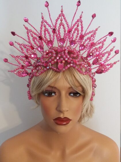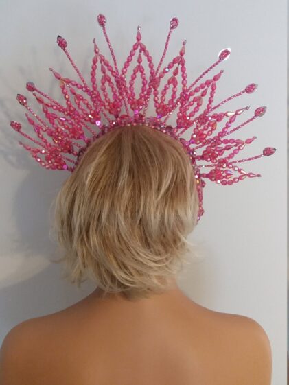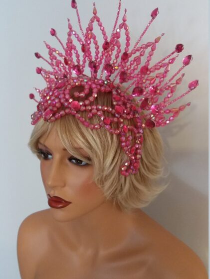 HOT PINK color Beads Crown. Headdress "LIBERTY" with bead chains ! ( Please see last picture ! )