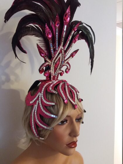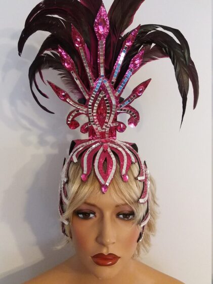 HOT PINK base with Mirror Headpiece with Rooster Feather decoration ! ( Please see all pictures ! )