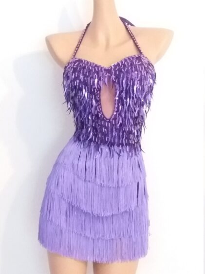 PURPLE Fringe / Beads Dress, open back. Incl. beads Choker ! ( Please see all pictures ! )