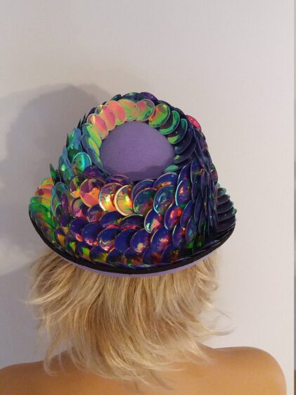 Linen base Hat with PURPLE large beads – nice Headpiece ! ( Please see all pictures ! )
