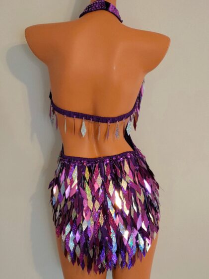 Sequins / Beads PURPLE color Sequin Design Bodysuit, open back, with netting insert at the front ! ( Please see pictures 2-4 ! )
