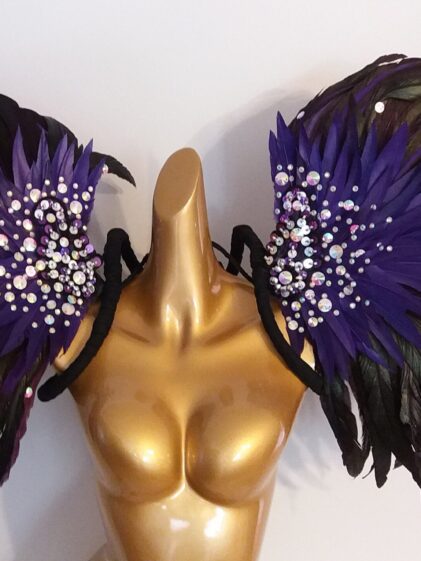 Large PURPLE real Rooster Feather Wings with detachable Feather Pads ! ( Please see all pictures ! )