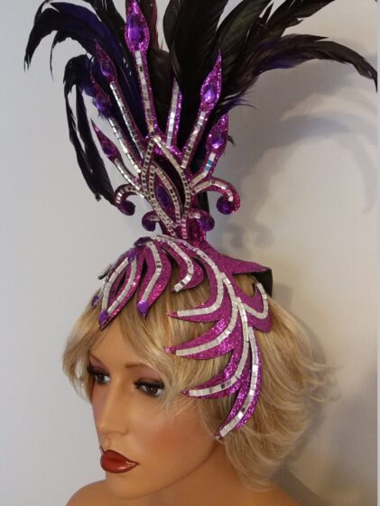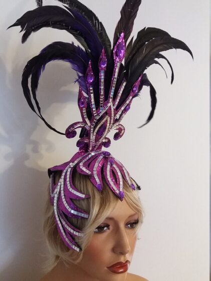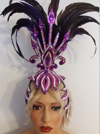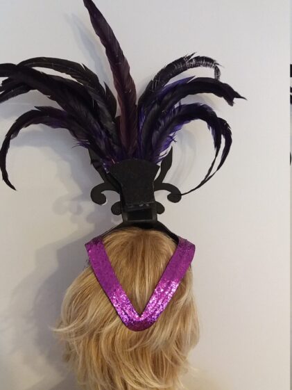 PURPLE base with Mirror Headpiece with Rooster Feather decoration ! ( Please see all pictures ! )