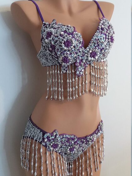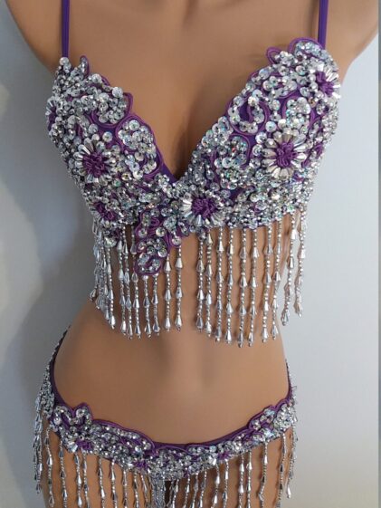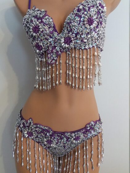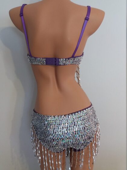 PURPLE Beads/Sequins BIKINI, "Full Brief" bottom, padded Bra ! 2-Piece Set !!! ( Please see all pictures ! )