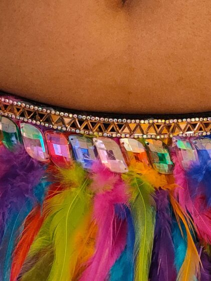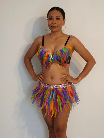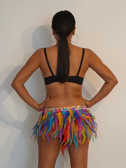 Size S/small M = 32 inch Feather Skirt + padded Bra (80cm/35 inches !