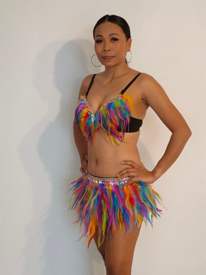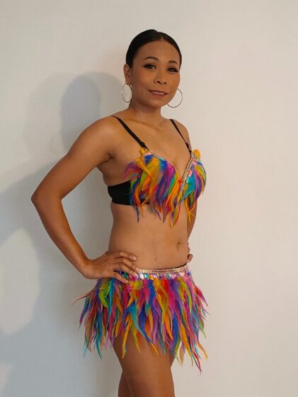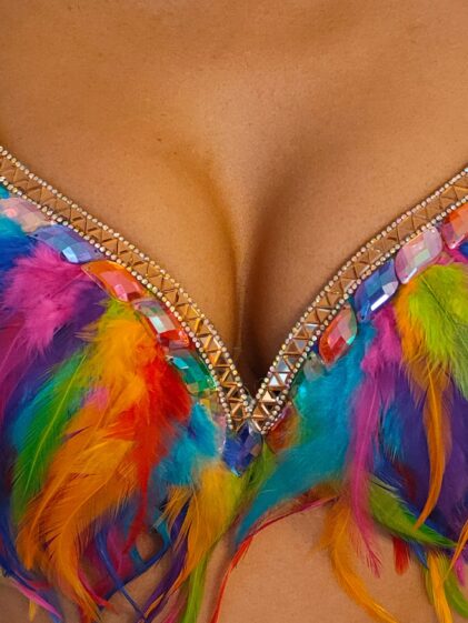 RAINBOW / MULTI color Feather BIKINI, includes the Feather Skirt, padded Bra ! 2-Piece Set !!! ( Please see all pictures ! )