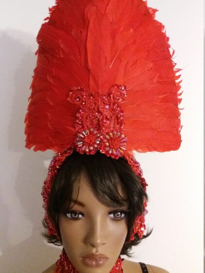 | RED Beads+RED Feather | RED Headpiece, RED Bikini Set- 3pc. |