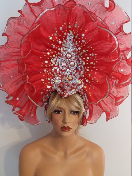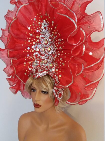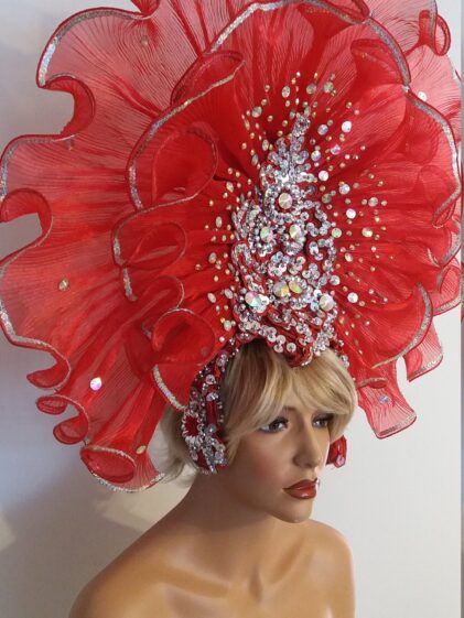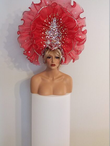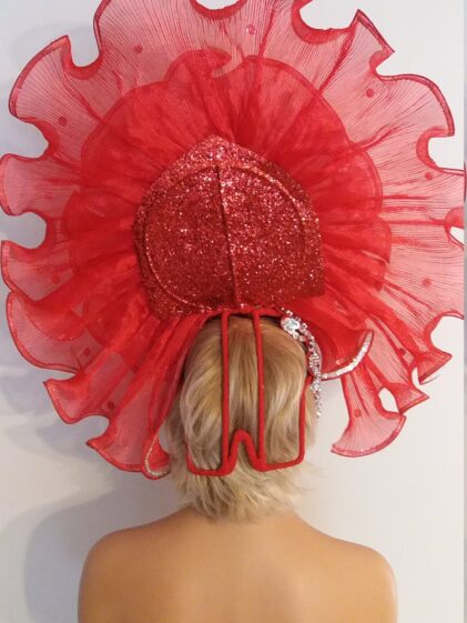 RED Chiffon/Organza Headpiece !    ( Please see all pictures ! )