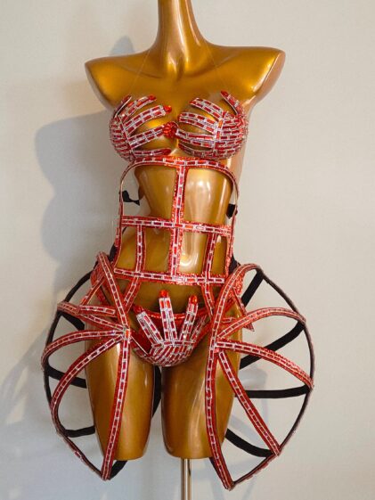 This luxury CAGE is the perfect addition to our crystal "Hands OFF" Bikinis or our Mirror clothes ( see all pictures )