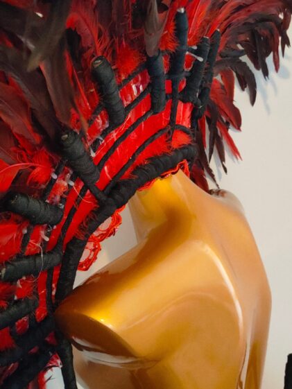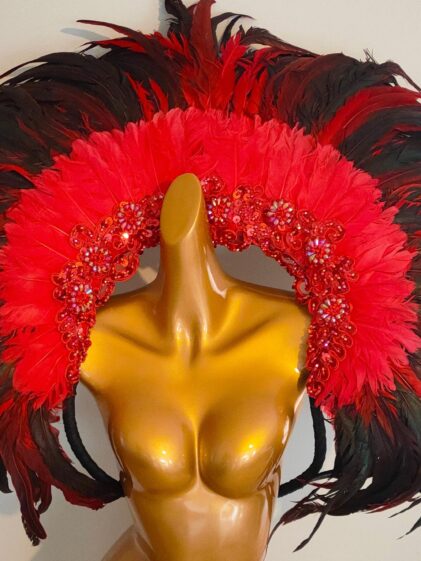 Giant RED Color real Rooster Feather Wings with empty slots for additional feathers, if desired ! ( Please see all pictures ! )