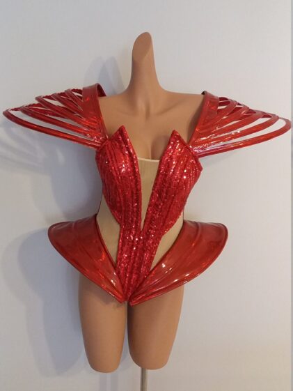RED color PVC Dance CORSET ! ( GaGa style ) ( Please see all pictures ! )