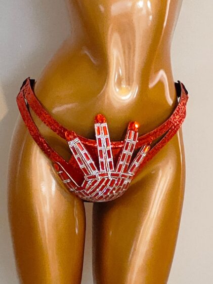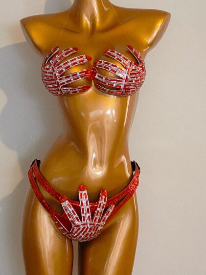 RED Crystals color luxurious "Hands Off" BIKINI with heaps of Crystal stones ! ( Ga Ga style ) ( Please see all pictures ! )