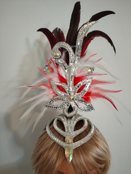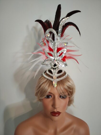 Silver base with RED color feathers Headpiece ! ( Please see all pictures ! )