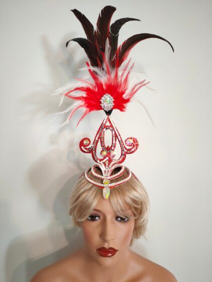 Silver base with RED color feathers Headpiece ! ( Please see all pictures ! )