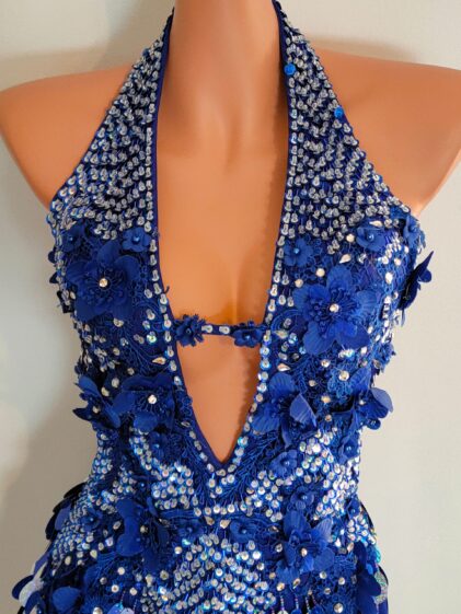 ROYAL BLUE Sequins / Beads + Crochet Dress, open back. ( Please see all pictures ! )