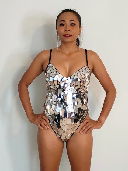 Lovely handmade Mirror / Beads / Crystal Design Bodysuit/Leotard.