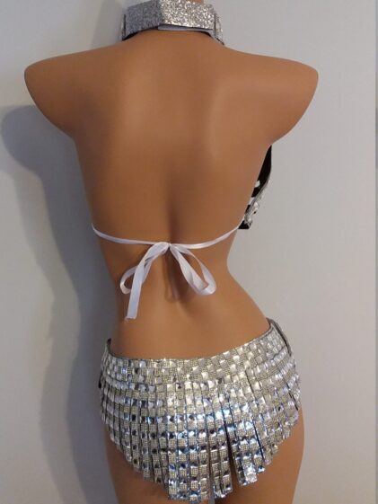 SILVER MIRROR SKIRT + Mirror Top, open back. ( Please see all pictures and choose your model ! )