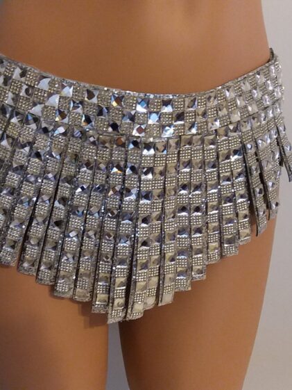 Lovely handmade SILVER MIRROR SKIRT + TOP, with 100's of small mirror pieces ! ( 1 Piece Set )