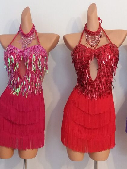 RED Sequin Fringe Dress-Samba Costumes Carnival Show Girl Las Vegas Notting Hill Pride Gay Parade festival School ball Brazil-WS-D2-Red