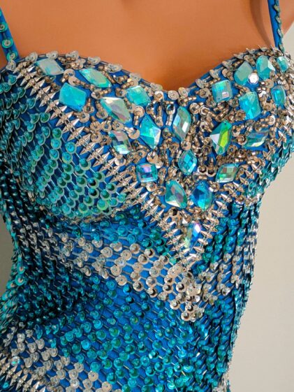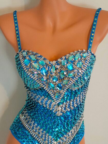 Sequins / Beads /Crystal stones TURQUOISE / Silver Sequin Design Bodysuit, closed back. ( Please see all pictures ! )