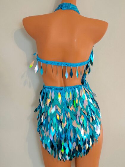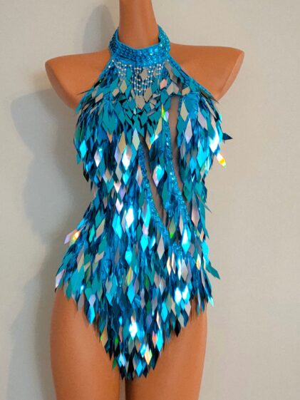 Sequins / Beads TURQUOISE color Sequin Design Bodysuit, open back, with netting insert at the front ! ( Please see pictures 2-4 ! )