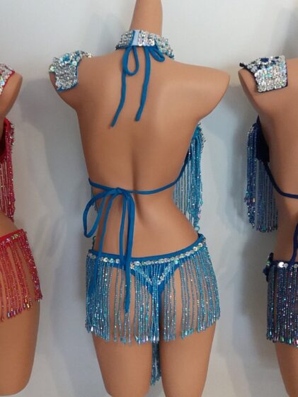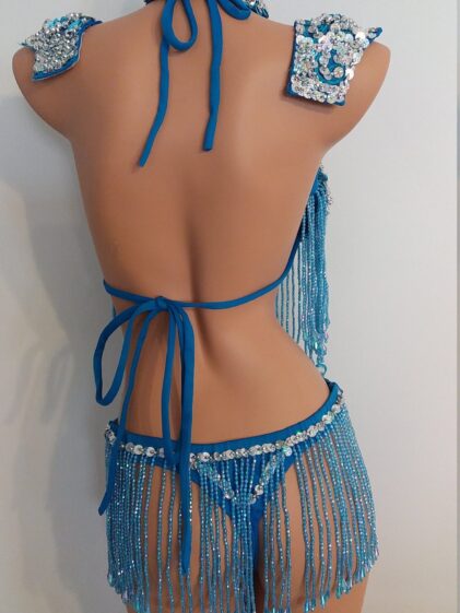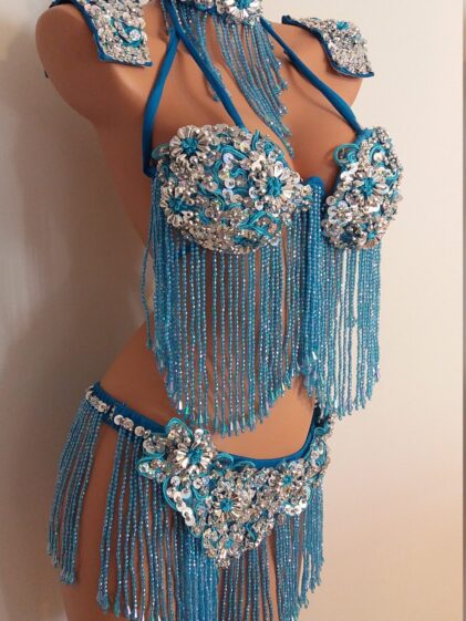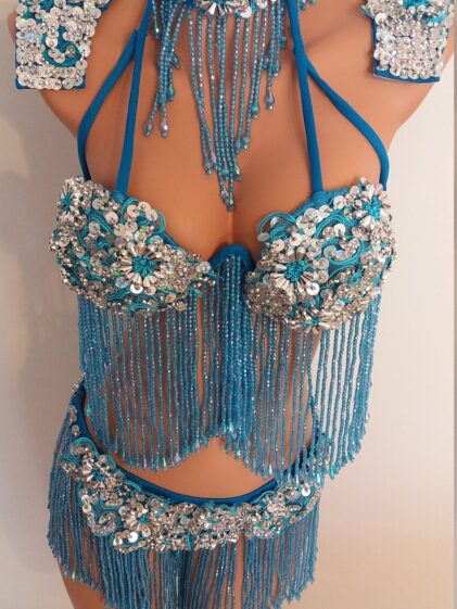 TURQUOISE Beads/Sequins BIKINI, "G-String" bottom, wired Bra + Choker ! 5-Piece Set !!! ( Please see all pictures ! )