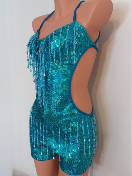 TURQUOISE Sequins Romper/Bodysuit with beads chains ! ( Please see all pictures ! )
