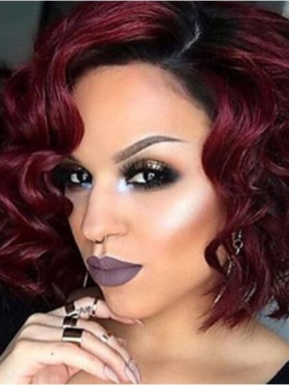 Extremely natural looking non lace, Curly short style wig in the color dark Red/Burgundy ( Please see picture ).