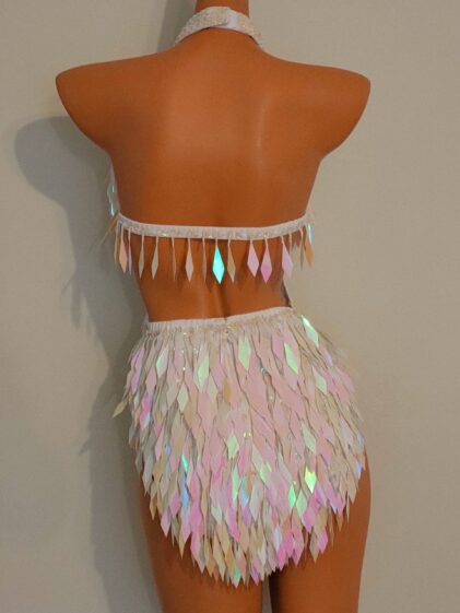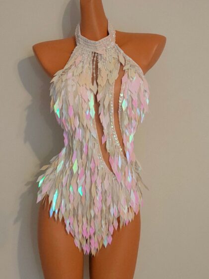 Sequins / Beads WHITE color Sequin Design Bodysuit, open back, with netting insert at the front ! ( Please see pictures 2-4 ! )