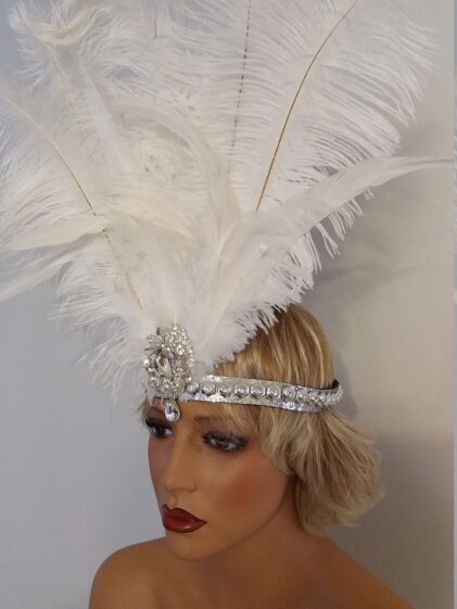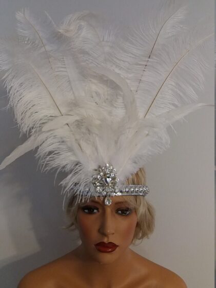 WHITE Ostrich Feather Headband / Headpiece ! ( Please see all pictures ! )