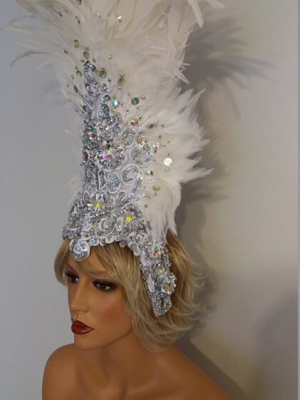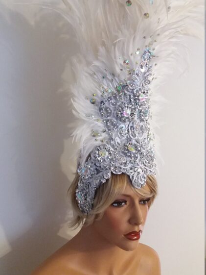 Large WHITE real Rooster Feather Headpiece ! ( Please see all pictures ! )