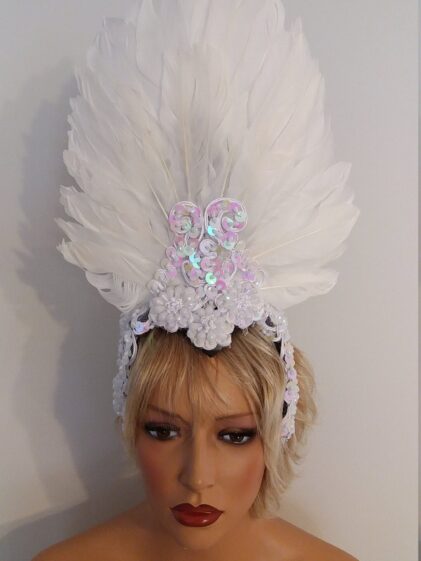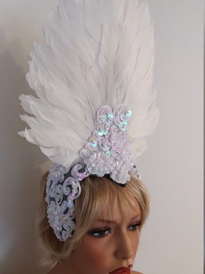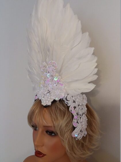 WHITE Duck Feather Headpiece, with matching Sequins ! ( Please see all pictures ! )