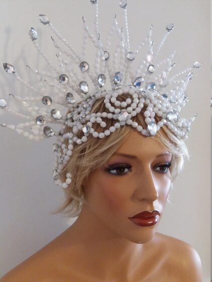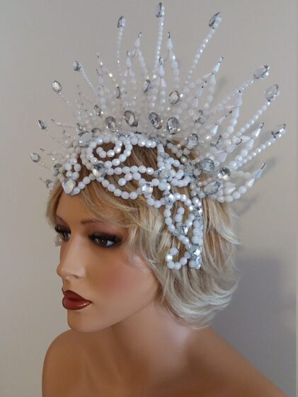 WHITE color Beads Crown. Headdress "LIBERTY" with bead chains ! ( Please see last picture ! )