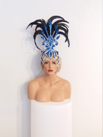 BLUE Mirror/Feather Headpiece-Headdress-Samba Costumes Carnival-Mardi Gras-Show Girl-Rio- Las Vegas Rave Gay Brazilian Carnaval-KS-HD1-Bl