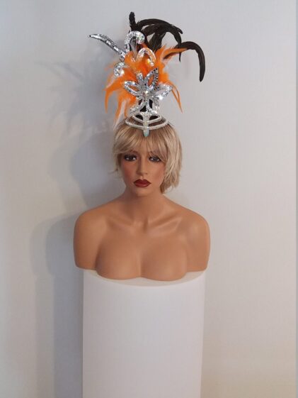 ORANGE Mirror Feather Headpiece-Headdress Samba Costumes Carnival-Mardi Gras-Show Girl-Rio- Las Vegas-Cabaret-Brazilian Carnaval-KS-SMH1-O
