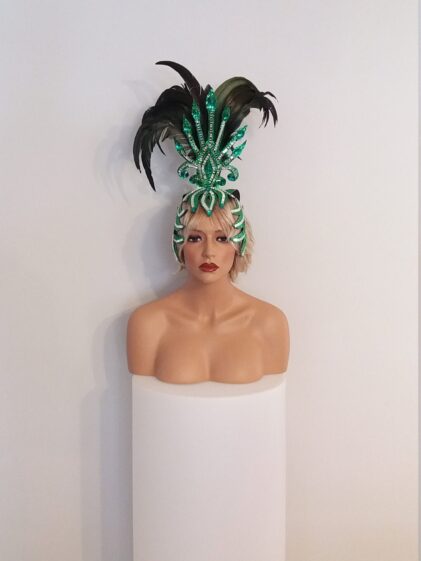 GREEN Mirror/Feather Headpiece-Headdress-Samba Costumes Carnival-Mardi Gras-Show Girl-Rio- Las Vegas Rave Gay Brazilian Carnaval-KS-HD1-Gr